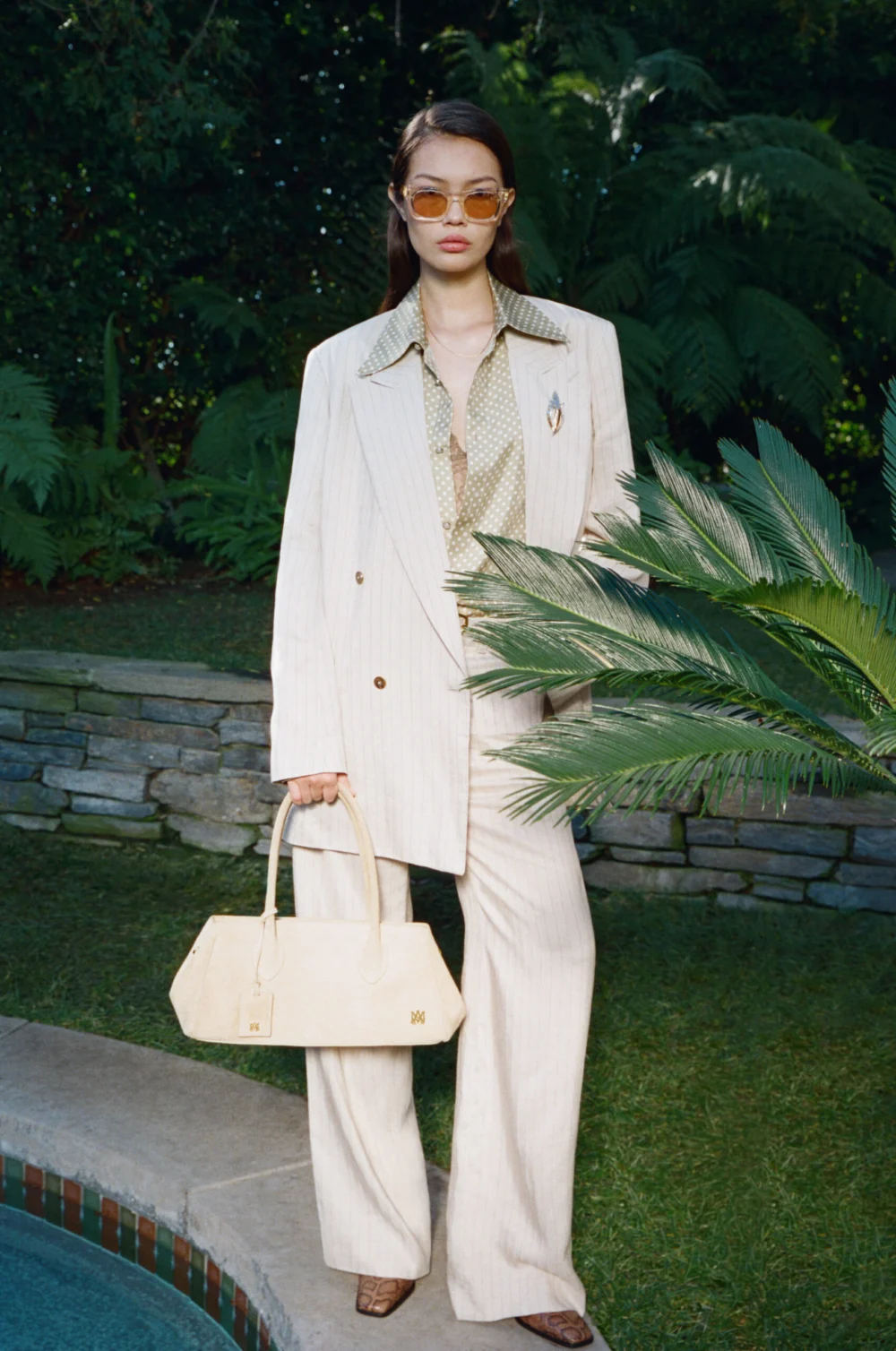 The Spring-Summer 2024 collection itself is showcased through these cinematic vignettes. The garments, characteristic of Amiri’s design philosophy, blend relaxed silhouettes with luxurious fabrics and intricate detailing. Campaign imagery depicts models outfitted in these "fits," accessorized with elements that enhance the narrative: martinis, designer sunglasses, vintage-inspired room keys, and sophisticated handbags. These props are not incidental; they are integral to constructing the "Chateau Amiri" experience, symbolizing leisure, exclusivity, and a certain West Coast nonchalance that defines the brand.