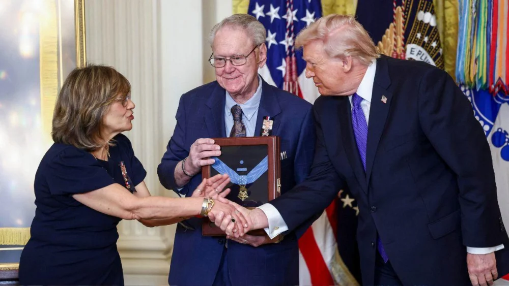 Donald Trump Attempts to Hide Neck Rash During Medal of Honor Ceremony at the White House as Health Rumors Mount