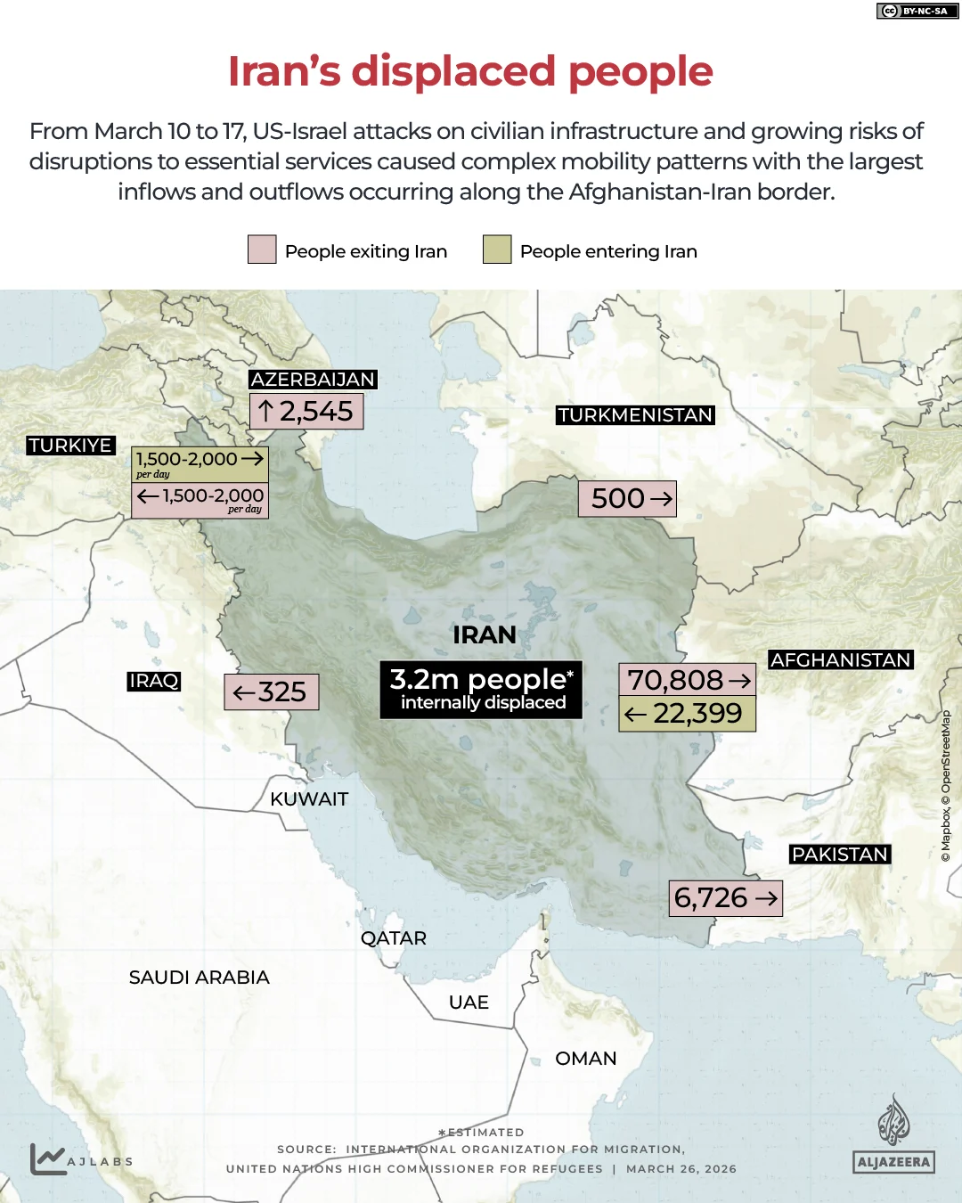 In Afghanistan, a significant number of arrivals are reportedly Afghan nationals returning from Iran, citing insecurity or forced repatriation. Pakistan has maintained strict border controls, permitting only authorized entries for its citizens or traders, and has reported no significant refugee inflows. Similarly, Turkiye, Turkmenistan, and Azerbaijan have reported stable borders with limited authorized crossings and the occasional evacuation of third-country nationals.